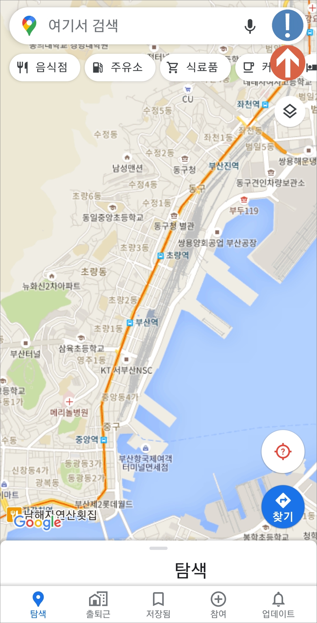 스마트폰으로 화면상의 지도(구글 맵)를 터치합니다.그러면 짜잔 지도가 펼쳐지겠죠